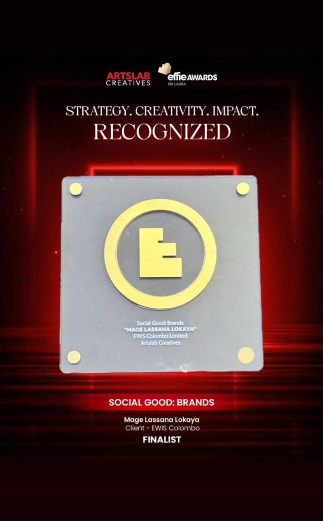 Awarded the Effie Award under the 'Social Good: Brands' category for the campaign, 'මගේ ලස්සන ලෝකය (Mage Lassana Lokaya)', an AI-powered campaign in collaboration with EWIS to drive vision eye donation pledges and raise awareness for the 'Sri Lanka Eye Donation Society' (SLEDS).